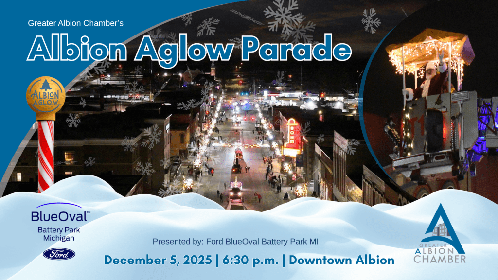 Albion is gearing up for one of its most festive evenings of the year as Albion Aglow and Albion College’s SAAC Winter Carnival return this Friday, December 5, 2025. With events spanning the late afternoon into the night, the community is invited to embrace the magic of the season with live music, family activities, local shopping, and of course—the beloved Albion Aglow Parade. Read on to learn more about all the festivities this Friday!
