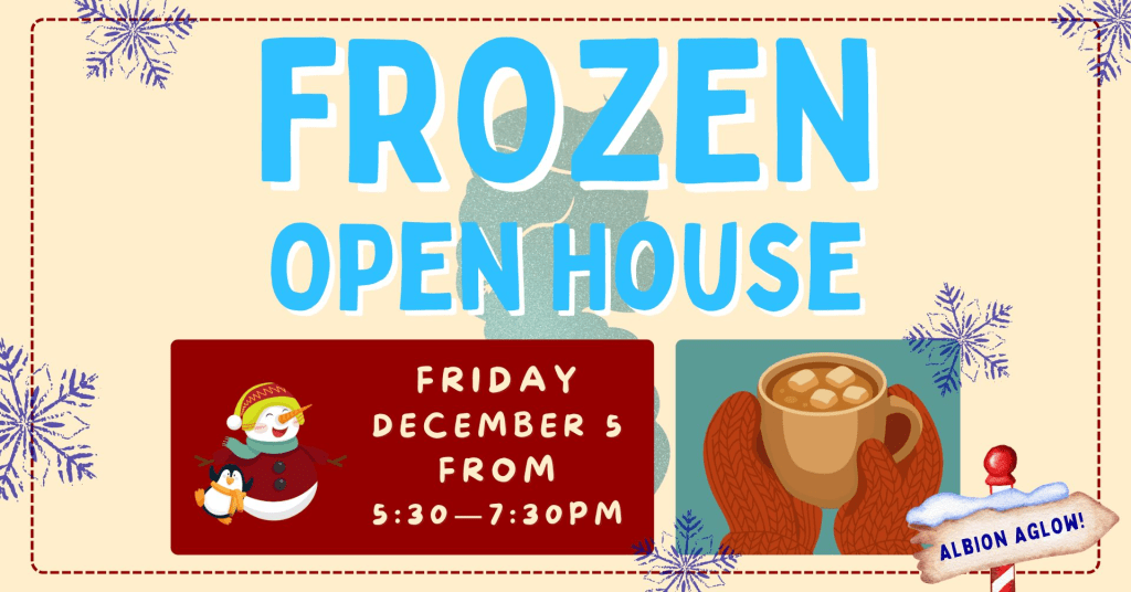 Just before the parade, the Albion District Library will welcome families for a Frozen Open House from 5:30–7:30 p.m.